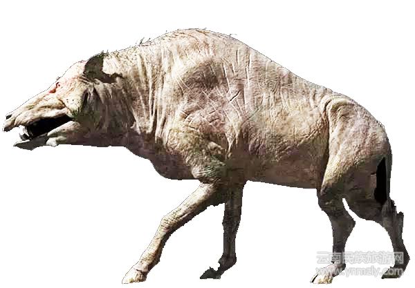 它真正的面目是讓人非??謶值模葎X虎都可怕;它是豬的近親,雖然長得丑點(diǎn),但是被稱為“沙土惡魔”。幸好,早早滅絕了。呃...表面看其兇神惡煞,可是這貨更喜歡啃食植物塊莖和藤蔓,主食是植物,想要開葷時(shí)才去搶食或食腐。