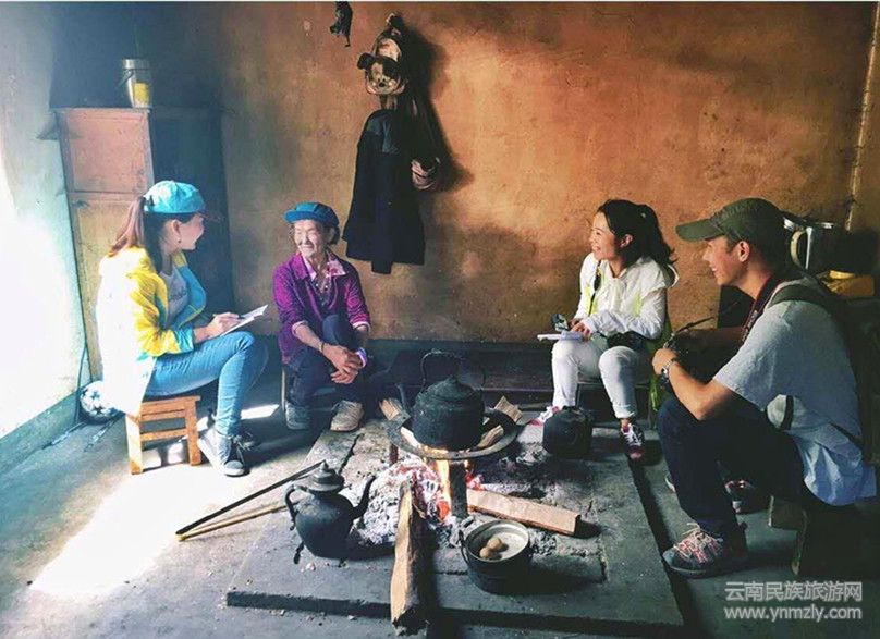 恰逢學(xué)生放假,她剛從獨(dú)龍江鄉(xiāng)把自己的孫女接回家,見(jiàn)到我們的到來(lái),她客氣的找來(lái)了杯子,給我們倒茶。大家圍坐在火塘邊,她告訴我們,他的兒子進(jìn)山了,幫驢友們挑行李,就是所謂的“挑夫”,說(shuō)起文面,她頗有感觸,她18歲紋面,1958年地震的時(shí)候,她跑出來(lái)了,因?yàn)楫?dāng)過(guò)村里的干部,工作繁忙,所以,直到40歲她才結(jié)婚。兩年前,政府建了房子以后,她到了熊當(dāng)小組,而每年的3月到6月她要到回到以前的居所,距離熊當(dāng)四個(gè)小時(shí)山路的木當(dāng)采集草藥,那里有豐富的草藥資源,那也是他們的主要經(jīng)濟(jì)來(lái)源。她說(shuō),木當(dāng)還有一位很老的文面女,將近一百多歲了。聽(tīng)到這,我本想著去拜訪,可山路遙遠(yuǎn),便放棄了。