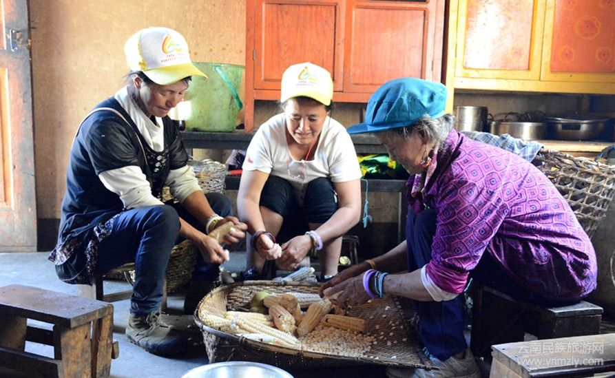 李文斯剛從地里收完玉米回家,和我們閑聊之余,手也沒(méi)閑著。一面將一粒粒飽滿的玉米剝下,一面熱情的回答我們的問(wèn)題。