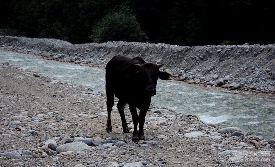 返程的時(shí)候,幸運(yùn)的遇到了獨(dú)龍牛,野生的獨(dú)龍牛具有攻擊性,而這頭是半野生的,所以當(dāng)我們走過(guò)它身旁的時(shí)候,它只是呆萌的看著我們。