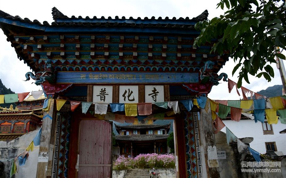 普化寺又叫喇嘛寺,屬藏傳佛教寺院,位于兩虎一獅的中間,占地面積3000多平方米,建筑古樸精美。始建于五百多年前,是唯一一座藏傳佛教噶舉派的寺院。普化寺附近的居民以藏族、怒族、傈僳族、獨龍族、納西族等少數(shù)民族為主。雖然是不同的民族,但他們都信仰著藏傳佛教并有著堅定的信心。
