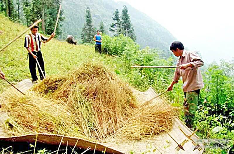 作為烏蒙山區(qū)的宣威人來說,苦蕎粑粑最讓人們記憶猶新,對(duì)于農(nóng)村的苦命孩子,它雖然不像洋芋一樣一日三餐與我們相伴,但出門在外,下地勞作,遠(yuǎn)門上學(xué),它通常是我們的美味餉午和路上盤纏。蕎麥,它對(duì)土壤要求不高,喜涼,生長(zhǎng)周期短,當(dāng)它遇上洋芋,蘿卜的時(shí)候,卻是農(nóng)作物中的絕佳拍擋。適合洋芋生長(zhǎng)的烏蒙山區(qū),8月份收完洋芋,將合著磷肥的蕎麥白蘿卜籽撒在地表,用五齒釘鈀隨便抓蓋一下(蕎麥芽頂土力差,埋深了它出不了土),等待的就是10月份的收割,中途幾乎不用你照看打理。待收割完蕎麥,留下蘿卜苗,可長(zhǎng)到來年春耕,它又是當(dāng)?shù)匚桂B(yǎng)土豬的上好飼料。勤勞聰明的宣威人充分利用了它們哥三的生長(zhǎng)周期和特點(diǎn),大面積種植并充分提高了土地的利用率。蕎麥這個(gè)“懶漢”莊稼,只要雨水充足,不遇上蟲災(zāi),吸收點(diǎn)洋芋生長(zhǎng)留下的余肥,豐收是注定的。它不像谷子,玉米等“高大上”的農(nóng)作物從初春的梨田鈀地,夏天的除草捉蟲,到深秋的擇時(shí)收獲那樣耗費(fèi)農(nóng)戶大量的時(shí)間、經(jīng)歷和心血。或許是得來的簡(jiǎn)單,它在當(dāng)?shù)氐氖匙V上并不被放在首要的位置,通常是用作豬飼料居多。也許因?yàn)楫?dāng)時(shí)人們都不富裕,油水欠缺,缺乏油水滋潤(rùn)的胃腸并不太喜歡味苦涼寒的苦蕎,所以大部分時(shí)間把它送給了豬,這個(gè)宣威土豬也是悶頭享受,洋芋,蕎麥,大蘿卜,或許也是成就了宣威火腿,宣威小炒肉美味、美名的根本原因。
