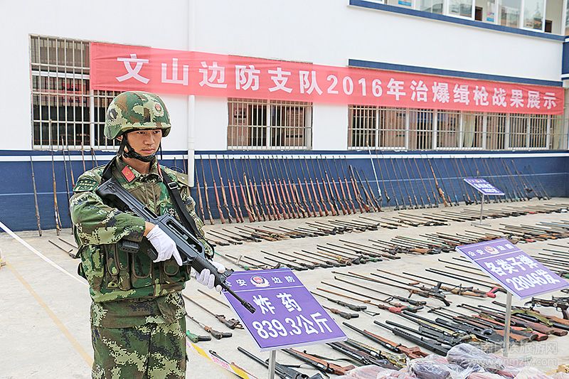 “截至11月15日,文山公安邊防支隊收繳各類非軍用槍支3400余支、炸藥近1.8噸、雷管13000枚、戰(zhàn)時遺留軍用子彈18發(fā)、炮彈43枚、手榴彈458枚。這些數(shù)字,凸顯了文山公安邊防支隊深入開展緝槍治爆工作的戰(zhàn)績。”文山公安邊防支隊政治處主任陽勇介紹。