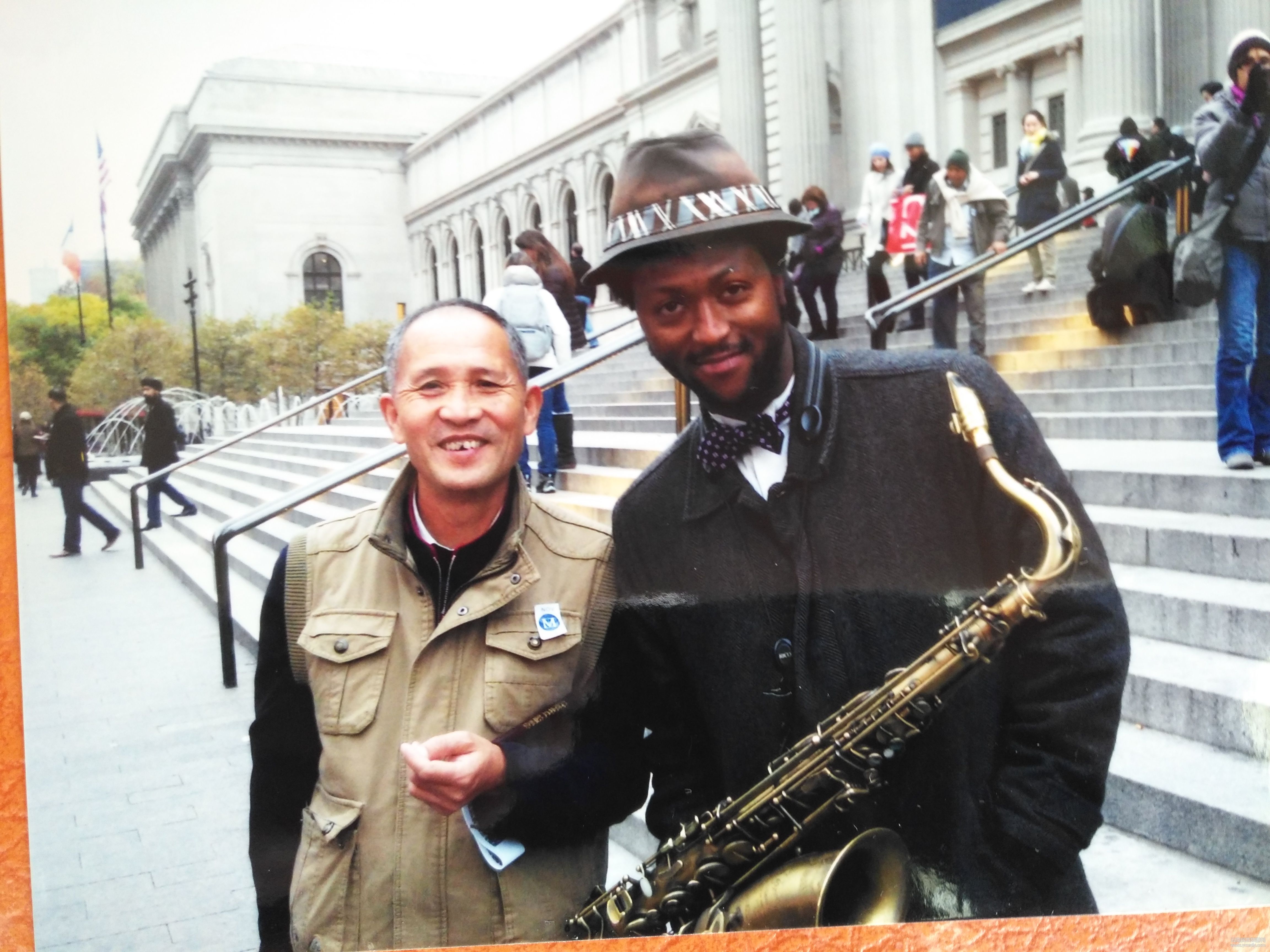 逛完紐約大都會后,剛出門,一個熟悉的旋律傳入他耳膜——《茉莉花》。演奏者是一位黑人年輕人。“你好!”不等王國運開口,年輕人一口流利的普通話脫口而出。原來,吹薩克斯的年輕人曾在中國上海和深圳等多地呆過,算是“漢語通”了。那次,兩人聊了很長時間,還在紐約博物館前合影留念。