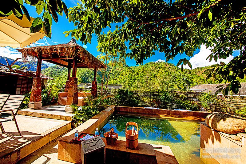 浴谷溫泉依山勢(shì)地形而建,浴谷建筑規(guī)模為10530平方米,園林造景4689平方米,谷中亭臺(tái)樓榭,小橋流水,花草樹木生機(jī)盎然,22個(gè)湯池、8間私密湯屋、兩處地?zé)嵫魠^(qū)域分布其中,使整個(gè)建筑布局與熱海景區(qū)的地?zé)嶙匀痪坝^有機(jī)結(jié)合,構(gòu)成了溫泉SPA文化與森林、天然地?zé)岘h(huán)境結(jié)合的的美妙畫景,是名符其實(shí)的山中溫泉養(yǎng)生世界.泡池區(qū)內(nèi)溫泉水均來自熱海景區(qū)內(nèi)知名溫泉源頭直接引入,根據(jù)引用的泉質(zhì)的不同,除特色大滾鍋硫磺池及原湯泡池區(qū)外,還設(shè)置了酒池、咖啡池、普洱茶池、蘆薈池等特色泡池區(qū),以及符合四時(shí)四季養(yǎng)生需求的“神農(nóng)藥浴”中藥泡池區(qū)。坐落于浴谷天然地?zé)崦皻獾孛娴你y杏及松針熱熏蒸房為國(guó)內(nèi)一絕、世界罕見,是地?zé)嵫舣煼捌氙煼ǖ睦硐胧サ?。浴谷溫泉根?jù)顧客需求及溫泉休閑養(yǎng)生特性特點(diǎn),首創(chuàng)溫泉八步五療程泡湯療法,力求在有限的入泡時(shí)間內(nèi),達(dá)到效果最優(yōu)的養(yǎng)生及修復(fù)效用。