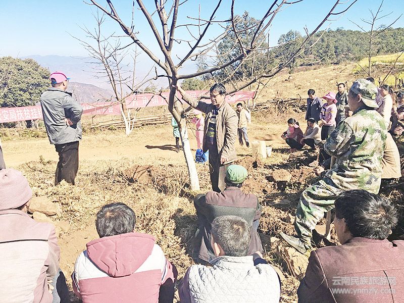 本報(bào)訊(通訊員 吳素琴)日前,麗江市森林公安局張福春副局長(zhǎng)一行扶貧工作組,聘請(qǐng)永勝縣林業(yè)局、永勝縣農(nóng)業(yè)局相關(guān)技術(shù)員,就經(jīng)濟(jì)林果種植技術(shù)在扶貧掛鉤點(diǎn)永勝縣片角鎮(zhèn)四角山村桃上村民小組舉辦了為期一天的產(chǎn)業(yè)扶貧現(xiàn)場(chǎng)培訓(xùn)會(huì),四角山村委會(huì)全體成員、桃上、桃下村小組60余名村民參加了此次培訓(xùn)學(xué)習(xí)。