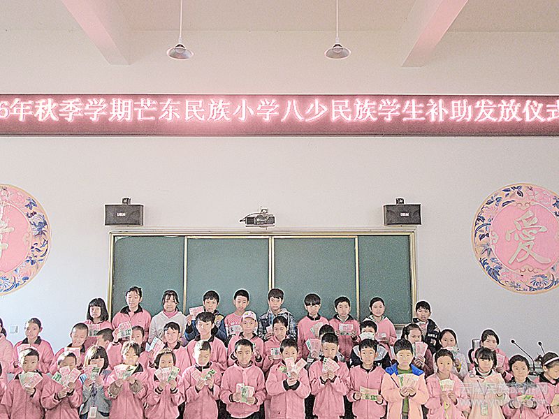 2016年12月30日,梁河縣芒東民族小學(xué)舉行困難學(xué)生生活補(bǔ)助發(fā)放儀式,把國(guó)家惠民利民政策落到實(shí)處,把上級(jí)黨委政府的關(guān)懷和溫暖送到家庭困難和少數(shù)民族學(xué)生的心坎上,喜領(lǐng)補(bǔ)助金的小學(xué)生感激之情溢于言表,心里滿(mǎn)載的幸福在冬日倍感溫暖。