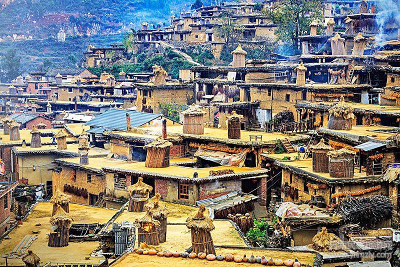 明成化九年(1473年),昂貴站在土司府的門檻前,久久地俯視著山坡下。他的視野里,是依山而建的1000多間土掌房,土掌房上下左右相連,村內(nèi)巷道交錯(cuò),整個(gè)村子就像一個(gè)立體迷宮。古村在選址與建設(shè)上符合中國傳統(tǒng)風(fēng)水學(xué),村寨景觀達(dá)到了人與自然共生共存的完美境界。