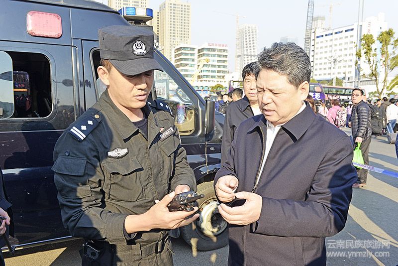 任軍號先后深入昆明火車站、南窯汽車站、北京路派出所、金碧廣場、南屏街廣場、塘子巷地鐵站、昆明市公安局指揮中心等地,首先通過現(xiàn)場撥打110報警電話檢查了聯(lián)勤聯(lián)動指揮勤務模式運行情況,實地察看了警力資源配置、值班備勤和在崗在位、重點部位安檢、警務裝備配備情況,聽取了流動人員管理、應急安全防范和處置警情數(shù)量、類型等情況匯報,隨機檢查了工作臺賬,并在昆明市公安局指揮中心調度了全市公安執(zhí)勤情況。