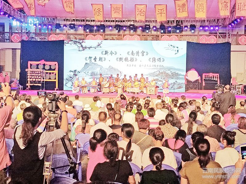 來自四川省西昌市邛都洞經(jīng)古樂團,文山州廣南縣壯鄉(xiāng)禮樂團,昆明市嵩明縣洞經(jīng)禮樂團,紅河州內(nèi)開遠市洞經(jīng)音樂協(xié)會、建水縣洞經(jīng)協(xié)會、通??h妙善學女子洞經(jīng)月光古樂協(xié)會、石屏縣洞經(jīng)音樂協(xié)會及蒙自本地的洞經(jīng)樂團共十一支洞經(jīng)樂團,先后演奏了《開經(jīng)贊》《龍鐘震》、《禮樂滿堂紅》、《新令》《南清宮》《賀圣朝》《倒拖船》《轉(zhuǎn)頌》、《水落音》、《一笛簫》《重鏡光》等精彩節(jié)目,為市民獻上了一場精彩紛呈的洞經(jīng)音樂展演。