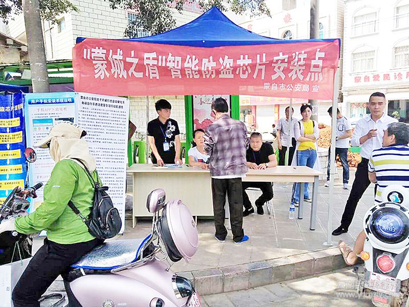 本報訊(通訊員 沈建嬌)為切實(shí)解決社會各界和廣大群眾反映強(qiáng)烈的電動車、二輪摩托車(簡稱“兩車”)被盜的社會熱點(diǎn)問題,精確打擊盜竊電動車、摩托車犯罪行為,確保人民群眾財產(chǎn)安全,蒙自市公安局多措并舉,聯(lián)合多方建設(shè)蒙自市物聯(lián)網(wǎng)“蒙城之盾”智能防盜系統(tǒng)管理平臺,專項(xiàng)治理電動車、摩托車“盜搶”違法犯罪行為。5月9日,蒙自電動車智能防盜系統(tǒng)正式開始安裝。安裝現(xiàn)場蒙自市公安局治安大隊副大隊長高弟及民警為市民解答疑問。