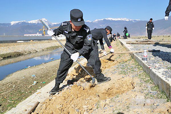 活動(dòng)中,迪慶州公安局90多名民警帶著鋤頭、水桶等工具,早早來(lái)到指定地點(diǎn)。在技術(shù)人員的指導(dǎo)下,民警干勁十足,挖坑、埋土、澆水,大家齊心協(xié)力,將229棵柳樹(shù)栽入指定地點(diǎn)。植樹(shù)期間,民警們的鞋子和褲子沾滿了泥土,額頭上流著汗水,但想到為美麗迪慶增添的一抹綠意,他們臉上都洋溢著笑容。