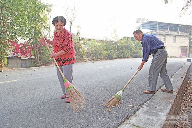 每天早上8點,家住瑞麗市畹町經(jīng)濟開發(fā)區(qū)國防路的徐文巧大媽準(zhǔn)時拿起掃把出門清掃街道,看到老伴兒出門,聶其成大爹也拿起掃把跟著出門。不論刮風(fēng)下雨,國防路上段都能看到他倆的身影,這里因他倆而干凈整潔。