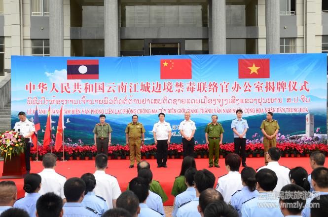 6月20日,云南江城邊境禁毒聯(lián)絡(luò)官辦公室揭牌儀式在云南省普洱市江城縣舉行。國家禁毒委員會、云南省公安廳,越南、老撾和聯(lián)合國毒罪辦等部門參加了揭牌儀式。