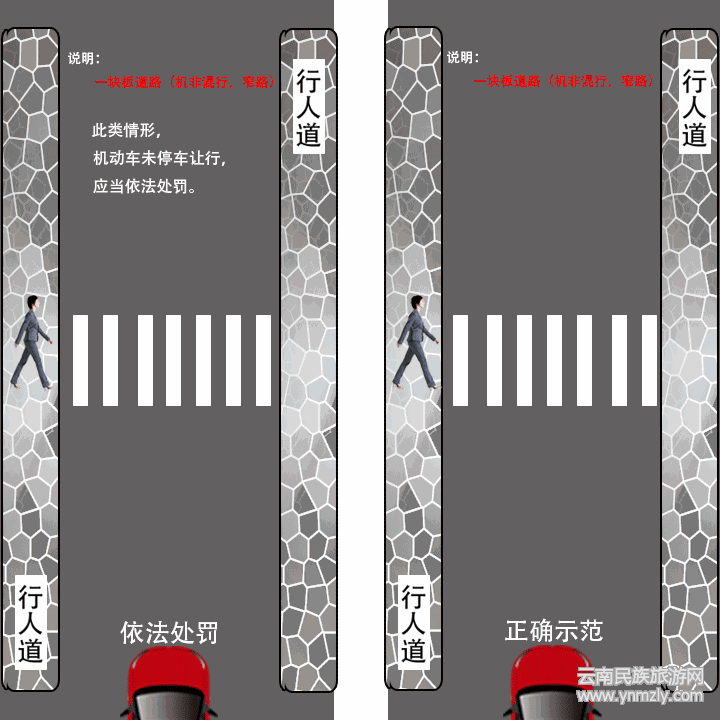 2.“遇行人正在通過人行橫道時未停車讓行的”依據(jù)《中華人民共和國道路交通安全法》第九十條、《云南省道路交通安全條例》第七十九條第(四)項的規(guī)定,處200元罰款,同時記3分。