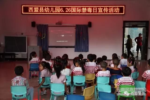 6月23日,在“6.26”國際禁毒日前夕,西盟縣公安局禁毒大隊(duì)以西盟縣幼兒園“校園開放日”為契機(jī),緊扣“無悔青春、健康生活”的主題,在縣幼兒園開展“6.26”國際禁毒日系列宣傳活動(dòng)。