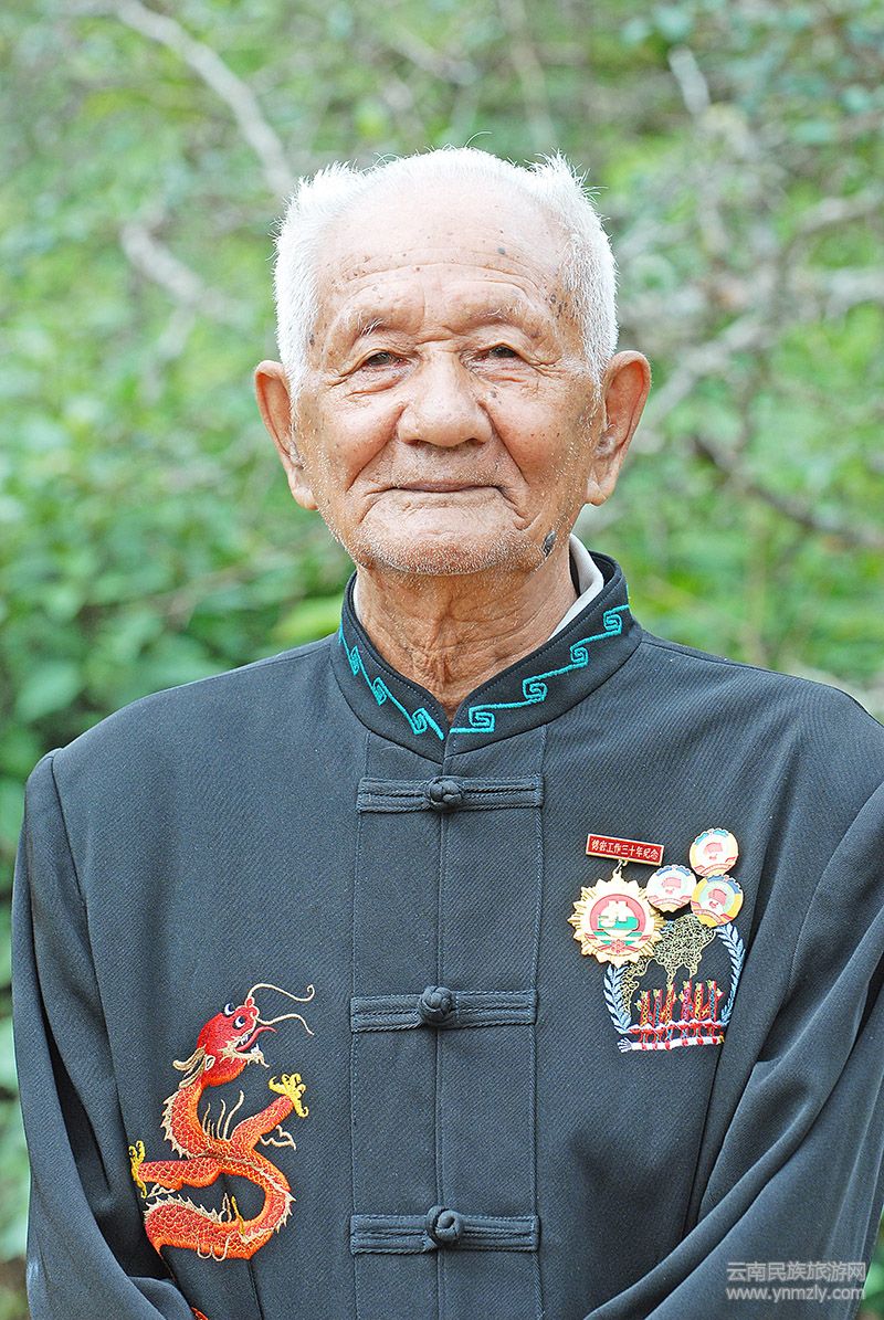 “哦,我們的山官打扮起來,你看看黑色的對襟衣裳,一邊還用彩色線繡著一條龍,兩條龍就像真的一樣,里邊再配上白色的襯衣,本是帥呢噶。”