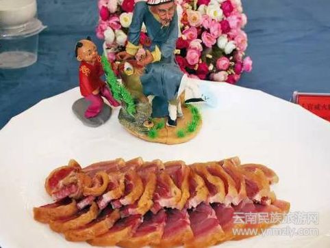 宣威火腿,云南省著名漢族特產(chǎn)之一,因產(chǎn)于宣威而得名。它的主要特點(diǎn)是:形似琵琶,只大骨小,皮薄肉厚肥瘦適中;切開斷面,香氣濃郁,色澤鮮艷,瘦肉呈鮮紅色或玫瑰色,肥肉呈乳白色,骨頭略顯桃紅,似血?dú)馍性谧虧?rùn)。其品質(zhì)優(yōu)良,足以代表云南火腿,故常稱“云腿”。