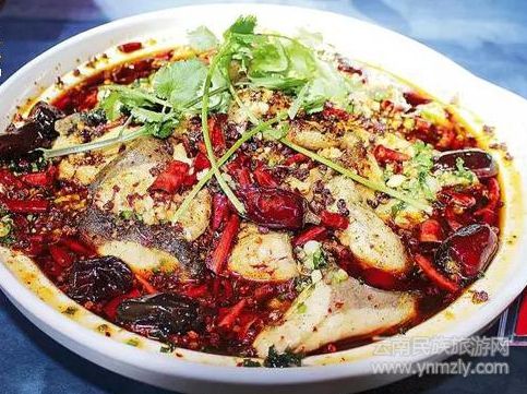 糊辣魚,曲靖人認(rèn)為是曲靖唯一自創(chuàng),不含任何外界制作手法和工藝的地道本地菜。糊辣魚起源于上世紀(jì)九十年代初,曲靖,自古便稱得上“魚米之鄉(xiāng)”、“衣食富足之鄉(xiāng)”,當(dāng)?shù)剞r(nóng)戶根據(jù)口味習(xí)慣,利用自產(chǎn)的、常見的辣椒用熗煮的方法,因?yàn)榕腼兪址í?dú)特,保留了魚中含有蛋白質(zhì),魚肉肌纖維較短,蛋白質(zhì)組織結(jié)構(gòu)松軟,水分含量多,肉質(zhì)鮮嫩。