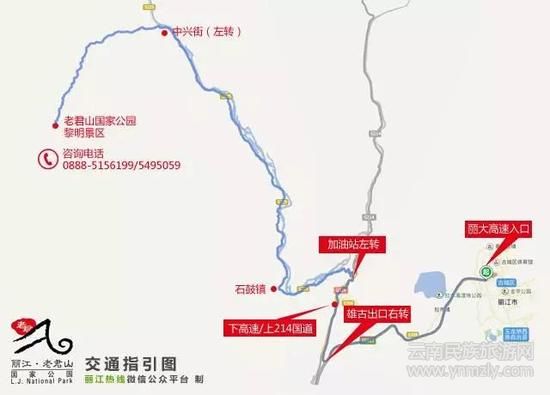 3、自駕車路徑:在束河路上大麗高速,經(jīng)拉市海、太安,至白漢場出口下高速。出收費(fèi)站后請注意路標(biāo),按指示上214國道,下山行至江邊Y字路口左轉(zhuǎn),一直前行。經(jīng)石鼓、新華、紅巖、四新、茨棵等村莊,至中興街頭Y字路口看標(biāo)識左轉(zhuǎn)進(jìn)入景區(qū)公路。