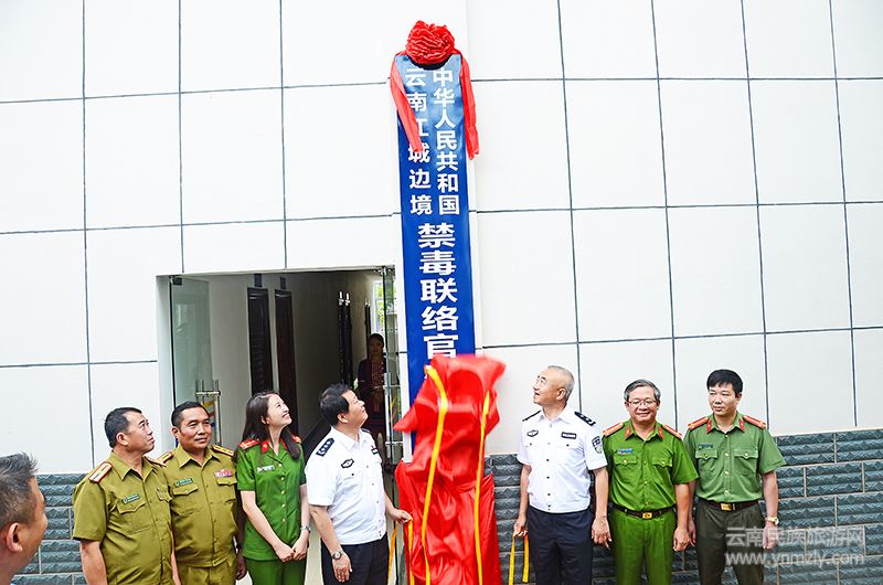 國家禁毒委員會(huì)副秘書長、公安部禁毒局副局長魏曉軍;云南省公安廳副廳長郭寶;越南公安部毒品和犯罪問題常務(wù)辦公室副主任黃英宣;老撾豐沙里省公安廳副廳長斯翁謝·維利法;普洱市副市長、市公安局局長張堯貴;江城縣副縣長、縣公安局局長謝光德;以及省公安廳、版納、紅河、臨滄等地公安機(jī)關(guān)的相關(guān)部門和民警參加了揭牌儀式。