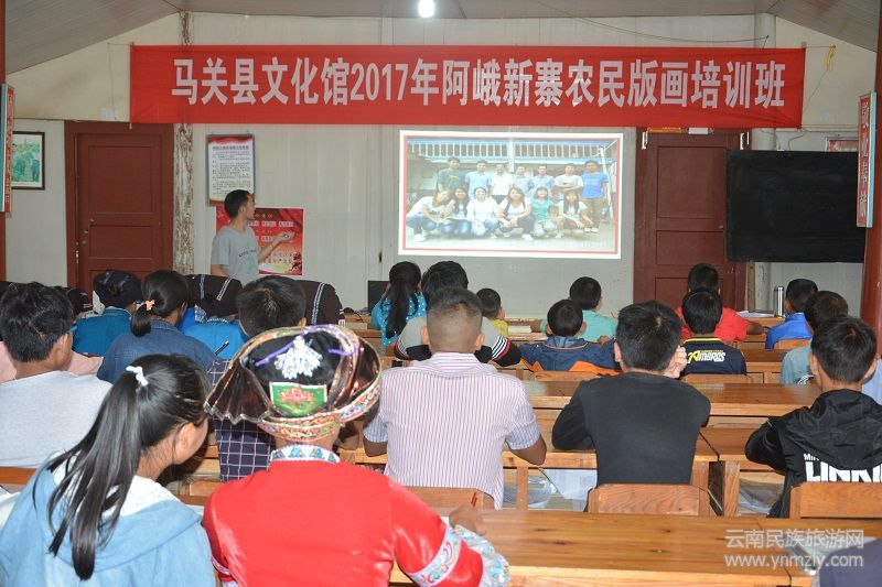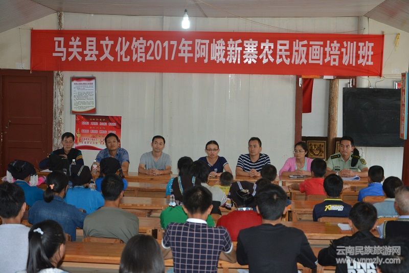 8月7日上午,馬關(guān)縣仁和鎮(zhèn)阿峨新寨農(nóng)民版畫培訓(xùn)班在“愛民固邊模范村”阿峨新寨版畫展覽中心開班。此次培訓(xùn)班為期5天,參訓(xùn)人員56人。