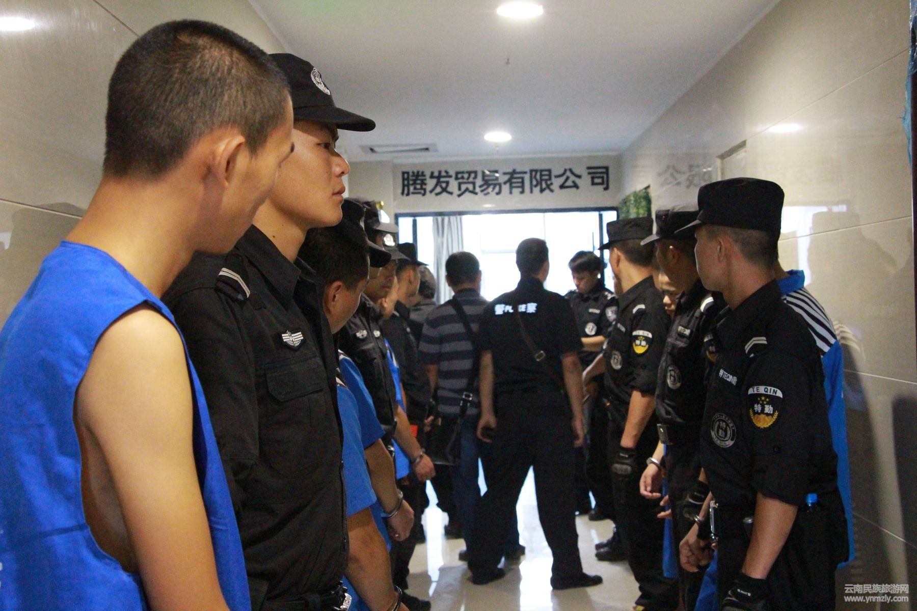 掌握相關(guān)證據(jù)和犯罪團(tuán)伙活動(dòng)規(guī)律后,專案組經(jīng)過(guò)周密部署,文山州、市公安局組織60余名警力分兩組,決定于7月13日22時(shí)對(duì)騰發(fā)貿(mào)易有限公司進(jìn)行突襲。21時(shí)30,第一組警力通過(guò)電梯順利到達(dá)預(yù)定位置,第二組警力由寫字樓物管人員帶領(lǐng)步行走應(yīng)急通道。突發(fā)狀況卻在這時(shí)出現(xiàn),由于寫字樓物管工作人員交接問(wèn)題,原先勘查好的通道防火門被鎖,緊張的物管工作人員又多次帶領(lǐng)走錯(cuò)方向。眼看時(shí)間一分一秒流逝,如不能按計(jì)劃展開(kāi)行動(dòng),讓犯罪團(tuán)伙有所察覺(jué)銷毀證據(jù),那等于打了一場(chǎng)敗仗!作為現(xiàn)場(chǎng)總指揮,文山市公安局副局長(zhǎng)王莊明臨時(shí)調(diào)整,帶領(lǐng)第二組警力走電梯通道,終于趕在22時(shí)前到達(dá)隨即突入騰發(fā)貿(mào)易有限公司。