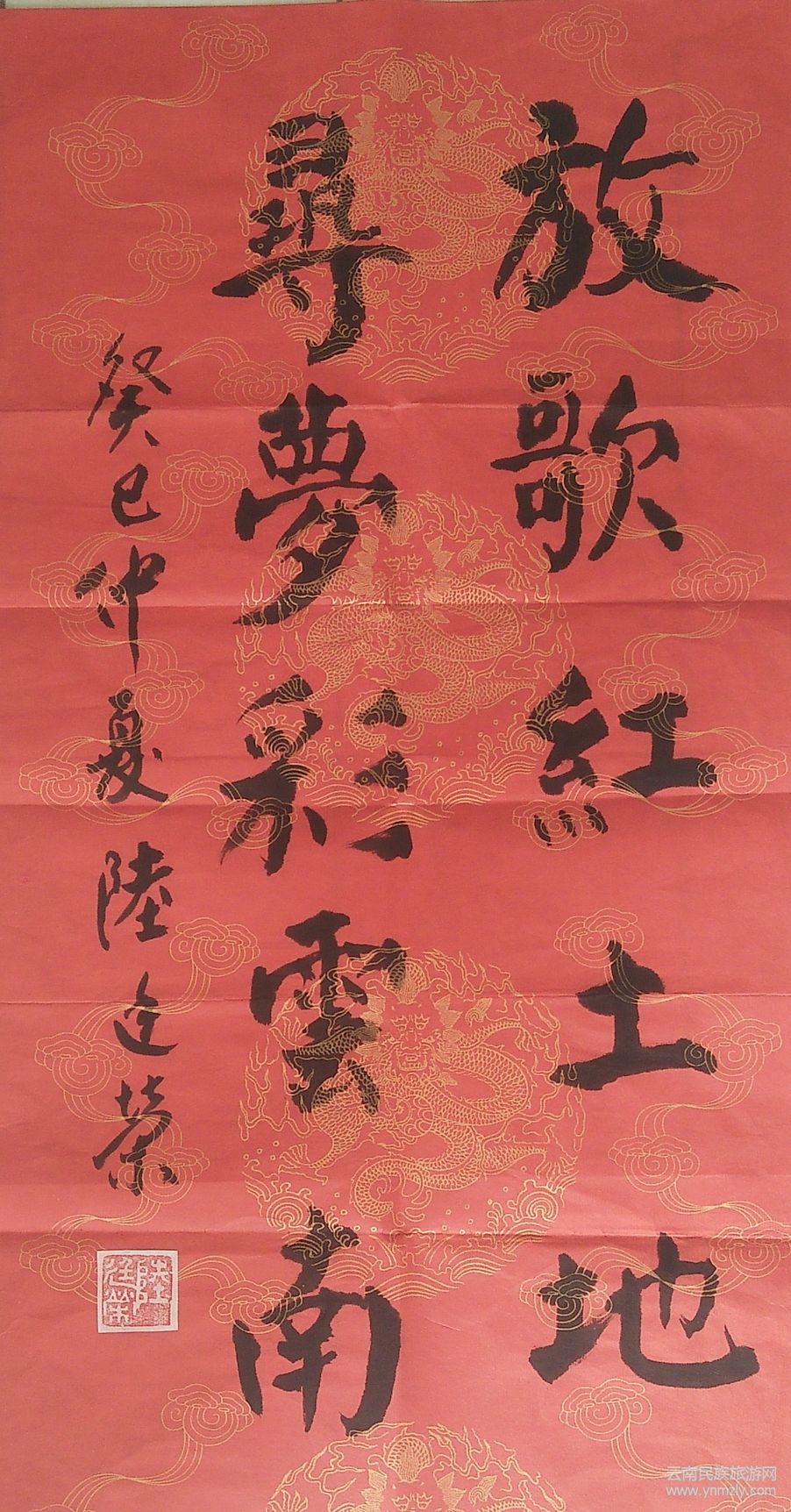 陸廷榮大膽的嘗試,終于得到了社會(huì)各界的認(rèn)可。2011年,他用爨碑書寫的毛澤東詞清平樂,入選“六盤山杯”中國(guó)書法大賽并展出。2013年,紀(jì)念孫過(guò)庭誕辰1365周年全國(guó)書法大展,他的書法作品獲一等獎(jiǎng)。2016年,其在昆明舉辦了個(gè)人書法作品展,集中展出了一定數(shù)量的他稱之為“爨隸”書的作品,得到了觀展者的一致贊許。同年,陸廷榮還遴選收集了大半輩子的書法作品,出了一本書法專集。
