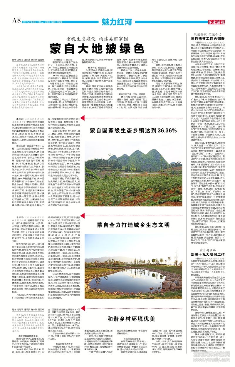 近年來,蒙自市放大森林覆蓋優(yōu)勢,全面實施鄉(xiāng)村石漠化治理、低效林改造、面山綠化、通道綠化和農村能源建設等工程項目,扎實開展自然生態(tài)保護和生態(tài)修復等工作,努力構建優(yōu)美和諧的鄉(xiāng)村生態(tài)環(huán)境。