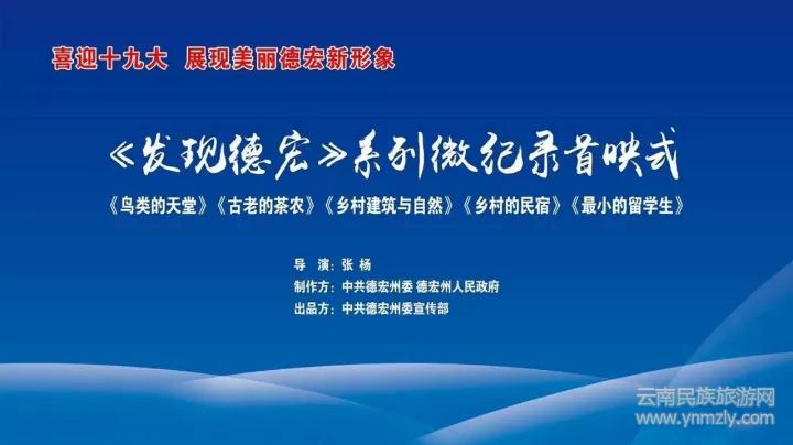 由著名導(dǎo)演張楊執(zhí)導(dǎo),德宏州委、州政府制作,州委宣傳部出品,全州各級(jí)各部門支持配合,全方位展示德宏民族團(tuán)結(jié)、生態(tài)環(huán)境、對(duì)外開放,民族文化的系列微紀(jì)錄《發(fā)現(xiàn)德宏》,10月13日在芒市首映。