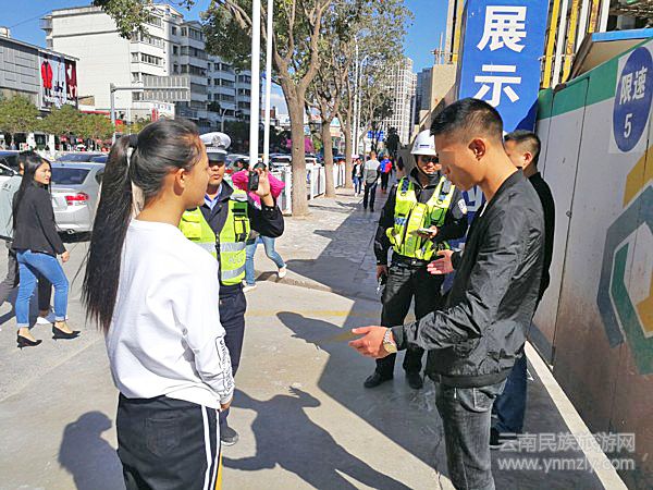 10月30日14時(shí)30分許,大理市公安局交警大隊(duì)下關(guān)中隊(duì)雙休勤務(wù)值班人員在大理市下關(guān)鎮(zhèn)建設(shè)路與關(guān)平路口指揮疏導(dǎo)交通,一個(gè)身穿白色運(yùn)動(dòng)服的女孩走到正在疏導(dǎo)交通的民警身邊,焦急地說(shuō):“警察叔叔,前面那名男子在紫云市場(chǎng)內(nèi)偷了我的手機(jī),我不敢找他要回來(lái),他們有2個(gè)人,所以我就一直跟著他們走,想在路上遇著警察的時(shí)候,請(qǐng)警察幫助我拿回來(lái)”。