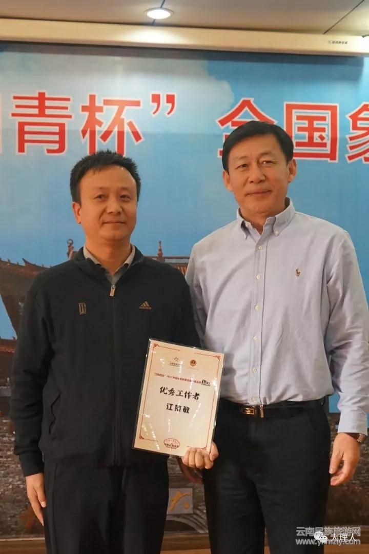 中國象棋協(xié)會(huì)老年委員會(huì)副主任、云南省棋牌運(yùn)動(dòng)管理中心主任、省棋類協(xié)會(huì)會(huì)長李建云先生;云南睿馨文化傳播公司總監(jiān)、云南省棋類協(xié)會(huì)副會(huì)長、大理州象棋協(xié)會(huì)主席李江先生;云南省棋牌運(yùn)動(dòng)管理中心推廣部主任、省棋類協(xié)會(huì)副會(huì)長兼秘書長、本次比賽裁判長鄭新年先生;大理懷仁酒店總經(jīng)理、大理州象棋協(xié)會(huì)副主席藍(lán)家強(qiáng)先生;北京市于若木慈善基金會(huì)西南管委會(huì)·鴻雁旅居健養(yǎng)管理中心主任宋吉力先生分別為前16名獲獎(jiǎng)選手頒獎(jiǎng)!