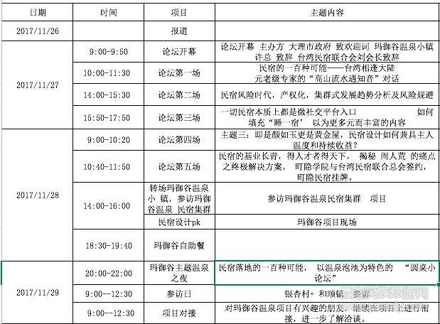 瑪御谷溫泉小鎮(zhèn)參訪瑪御谷溫泉 、參訪瑪御谷溫泉民宿集群、項目民宿集群 、民宿設(shè)計大PK、瑪御谷項目現(xiàn)場、瑪御谷主題溫泉之夜:以溫泉泡池為特色的“圓桌小論壇”民宿落地的一百種可能 。