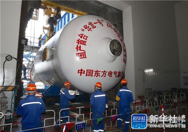 11月10日,“華龍一號”全球首堆示范工程福建福清核電5號機組首臺蒸汽發(fā)生器順利吊至5號機組反應(yīng)堆廠房16.5米平臺。新華社記者姜克紅 攝