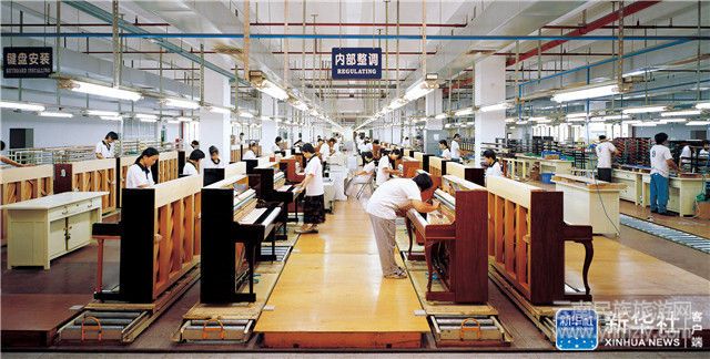 這是珠江鋼琴集團的立式鋼琴裝配生產(chǎn)線(資料照片)。新華社發(fā)