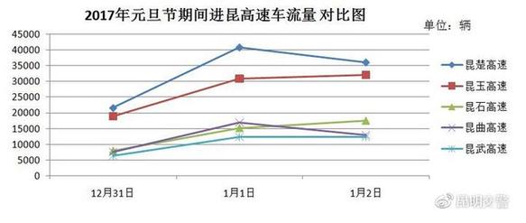 對比分析2017年元旦節(jié)假期昆明周邊主要高速車流量。如下圖: