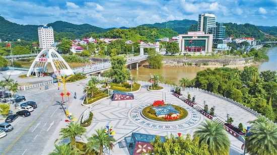 這是河口最平常的截面:在紅河與南溪河的交匯口,“中國(guó)河口”口岸,繁忙的貿(mào)易往來(lái),一個(gè)個(gè)推著推車、匆匆而過(guò)的身影,讓人印象深刻;在國(guó)門旁,一張碩大的銅質(zhì)中國(guó)地圖鋪展在地面上,無(wú)論游客來(lái)自哪里,都可以找到“故鄉(xiāng)”;在地標(biāo)點(diǎn)花壇,五顏六色的盆栽圍繞著“西南海拔最低點(diǎn)76.4米”的圓形標(biāo)志,展現(xiàn)著河口在西南地區(qū)之“最”的地位;社會(huì)主義核心價(jià)值觀主題公園,構(gòu)筑起市民和游客共同的精神家園;在濱江路,中國(guó)結(jié)、扇子、窗花等中國(guó)元素的裝飾,讓民族傳統(tǒng)文化歷久彌新,增強(qiáng)了國(guó)際合作的親和力。