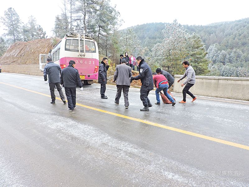 靈活采取管控措施。對于道路結冰,但具備通行條件的,馬樹派出所交通管理中隊全警上路,灑工業(yè)鹽使危險路段冰塊融化,指揮車輛通行。對道路結冰面積較大,不具備通行條件的,采取臨時交通管制措施,禁止車輛通行,告知車輛駕駛人繞道通行。落實卡點24小時值班制度、定期與不定期到馬樹客運站檢查制度、定期與不定期向馬樹八村三委通報轄區(qū)道路隱患隱患點、交通突出違法行為制度等工作措施。