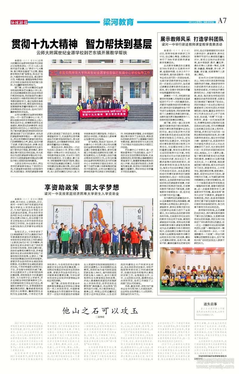此次跟班學(xué)習(xí),收獲頗多,我們將繼續(xù)抓住師大實(shí)驗(yàn)中學(xué)幫扶我校的契機(jī), 積極主動(dòng)學(xué)習(xí)借鑒云師大實(shí)驗(yàn)中學(xué)成功的的經(jīng)驗(yàn)和做法,提高我們的素質(zhì)和水平。