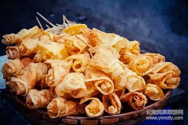 云南十八怪之“牛奶做成片片賣”,講的就是這乳扇,它是一種薄片狀的特質(zhì)干酪,因形狀如菱角狀竹扇之形而得名??局频娜樯韧ǔ尤朊倒遽u、蜂蜜等調(diào)味,濃郁的奶香與花香在口中酸甜回旋,一定要趁熱吃才能感受到奶皮的香酥口感。