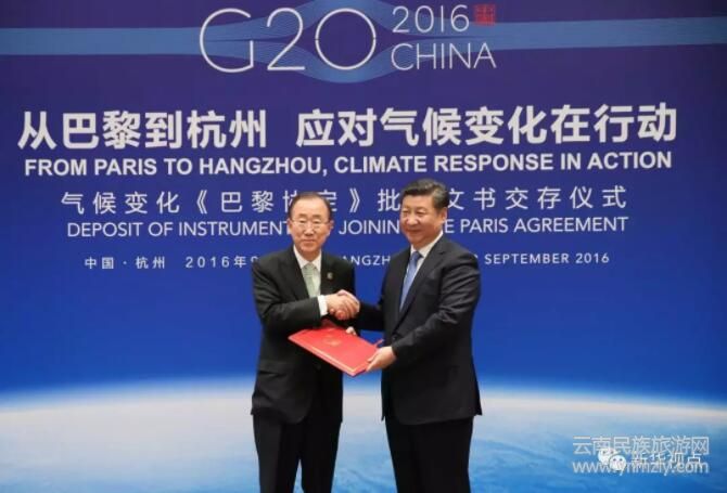 2016年9月3日,習(xí)近平向潘基文交存中國(guó)氣候變化《巴黎協(xié)定》批準(zhǔn)文書。新華社記者蘭紅光攝