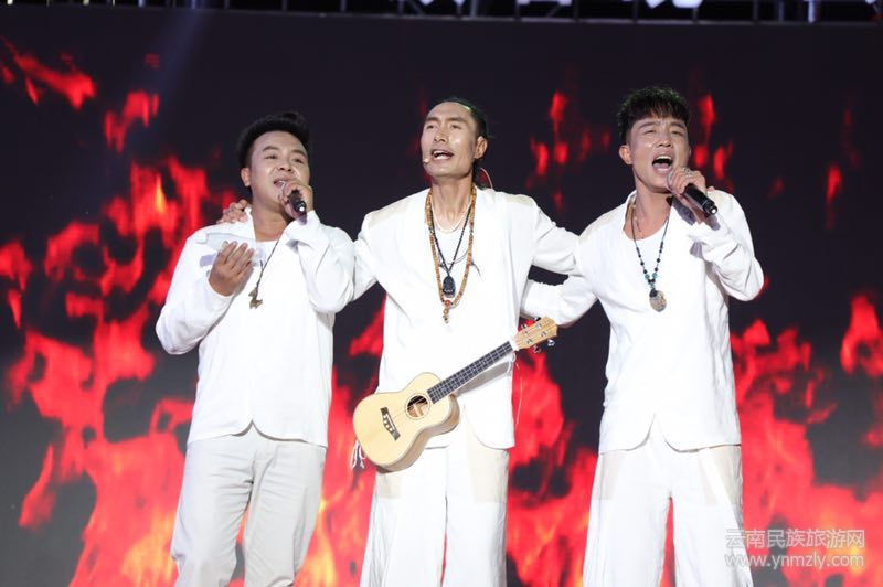 演出中,精彩的歌舞表演,將晚會推向了高潮,一陣陣的喝彩聲此起彼伏?!兑粔乩暇啤?、《彩云藍(lán)天》、《陽光會把你照耀》、《納西三部曲》等節(jié)目表演,贏得了現(xiàn)場熱烈地掌聲。嘹亮的歌聲響徹夜空,經(jīng)久不息。