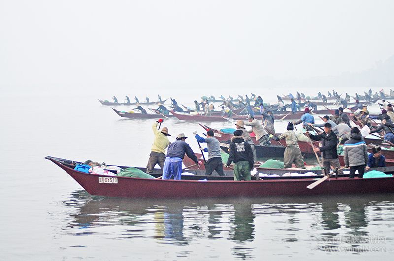 魚(yú)是中國(guó)傳統(tǒng)的春節(jié)年畫(huà)和團(tuán)圓飯中不可缺少的元素,國(guó)人付于了它非常美好的寓意,預(yù)示年年有余,五谷豐登。因此,每年云南江川星云湖的“開(kāi)漁”就變成當(dāng)?shù)氐囊粋€(gè)節(jié)日。2017年12月25日上午8時(shí),隨著“砰、砰、砰”三發(fā)信號(hào)彈升空,云南江川第十三屆“開(kāi)漁節(jié)”暨高原湖泊水產(chǎn)品交易會(huì)拉開(kāi)了序幕。頓時(shí),星云湖中漁舟如梭,競(jìng)相捕魚(yú),岸上游客密集,車(chē)水馬龍。漁市碼頭,漁船載魚(yú)而歸,魚(yú)攤相鄰,魚(yú)堆如丘,游客商人,歡愉交談,隨心選購(gòu)。