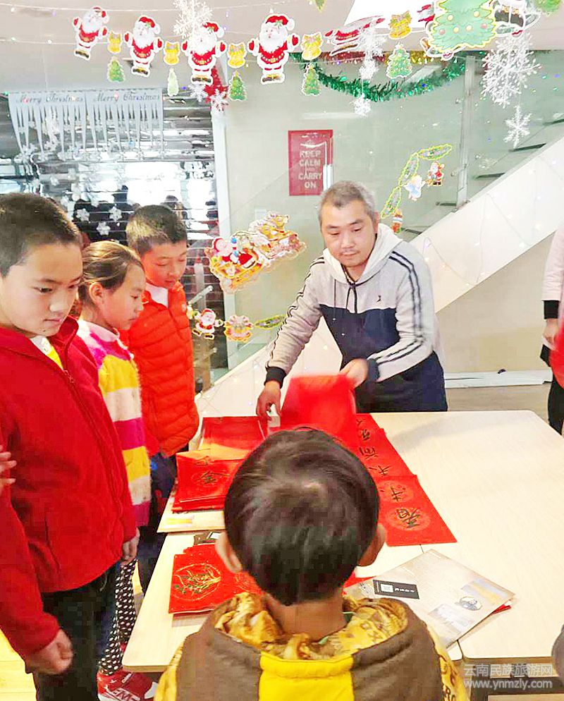 2017年最后一天,在2018年春節(jié)來臨之際,云南傳統(tǒng)蒙學研究會子清書院攜手云南知名書法家及書法愛好者,向昆明市民免費寫送春聯(lián)活動在官渡區(qū)銀海暢園東區(qū)隆重舉行。10多名小書法家現(xiàn)場助陣,揮毫潑墨為市民書寫上千副春聯(lián)。許多領(lǐng)到書法家墨寶的市民,紛紛給這次惠民活動的書法家點贊。此次送春聯(lián)活動在官渡區(qū)暢園東區(qū)舉行,官渡區(qū)暢園臨近官渡古鎮(zhèn),人來人往。得知是免費提供紅紙、書法家義務書寫,不少市民駐足求字。