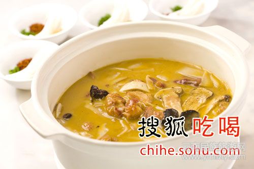 武定砂鍋雞,原料用的是云南武定的土雞,配以松茸、黑松露、雞樅精心熬制4小時(shí)而成,營養(yǎng)價(jià)值極高。雞湯味道醇厚,溫和婉約,在口中似乎沒有任何雜質(zhì)一般絲滑。