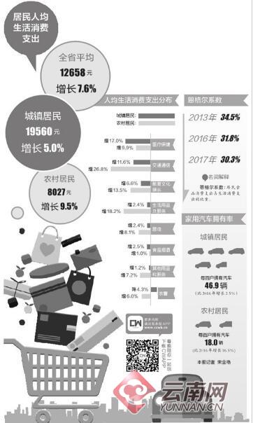 云南網(wǎng)訊 日前,國(guó)家統(tǒng)計(jì)局云南調(diào)查總隊(duì)發(fā)布2017年全省居民收支與生活狀況調(diào)查結(jié)果,2017年云南居民人均生活消費(fèi)支出12658元,比上年增加889元。