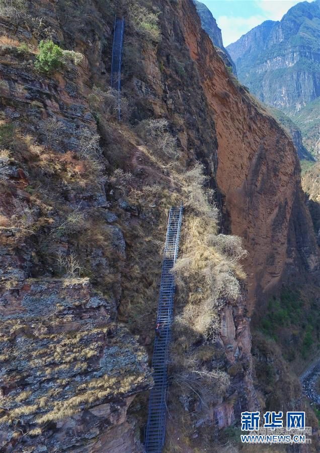 這是四川涼山州昭覺(jué)縣阿土列爾村的鋼梯局部一景(2017年4月13日攝)。新華社記者 劉坤 攝