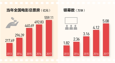 2018年春節(jié)長假期間,全國電影票房創(chuàng)下歷史同期新高,除夕至正月初六,全國總票房達57.2億元,較去年同期增長66.9%。2017年全國電影總票房達559.11億元,較上年同期增長13.45%。