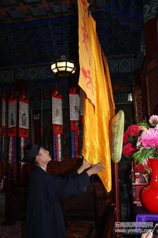 法會(huì)伊始,昆明市道教協(xié)會(huì)教務(wù)主任、真慶觀知客夏理真道長,昆明市青年聯(lián)合委員會(huì)代表王詩瑩,狀元樓社區(qū)居民委員會(huì)主任楊汝秀分別致辭;隨后,真慶觀高功大法師夏理真道長宣讀祈禱文,法會(huì)正式開始;法師步入壇場(chǎng)后,高功大法師夏理真道長還進(jìn)行了道教科儀中的“卷簾朝覲”儀式,卷簾指啟請(qǐng)仙真降臨壇場(chǎng),如同人世君王臨朝聽政,卷簾聽取高功面陳奏疏;法事過半,高功法事帶領(lǐng)信眾香客在道觀里閱廟轉(zhuǎn)天尊,轉(zhuǎn)到施粥處時(shí),高功法師向臘八粥灑凈、畫符,把最好的祝福和吉祥帶給廣大信眾香客,緊接著,施粥開始,信眾香客們有秩序的排隊(duì)領(lǐng)取開光臘八粥,悠然品享美味時(shí)光。