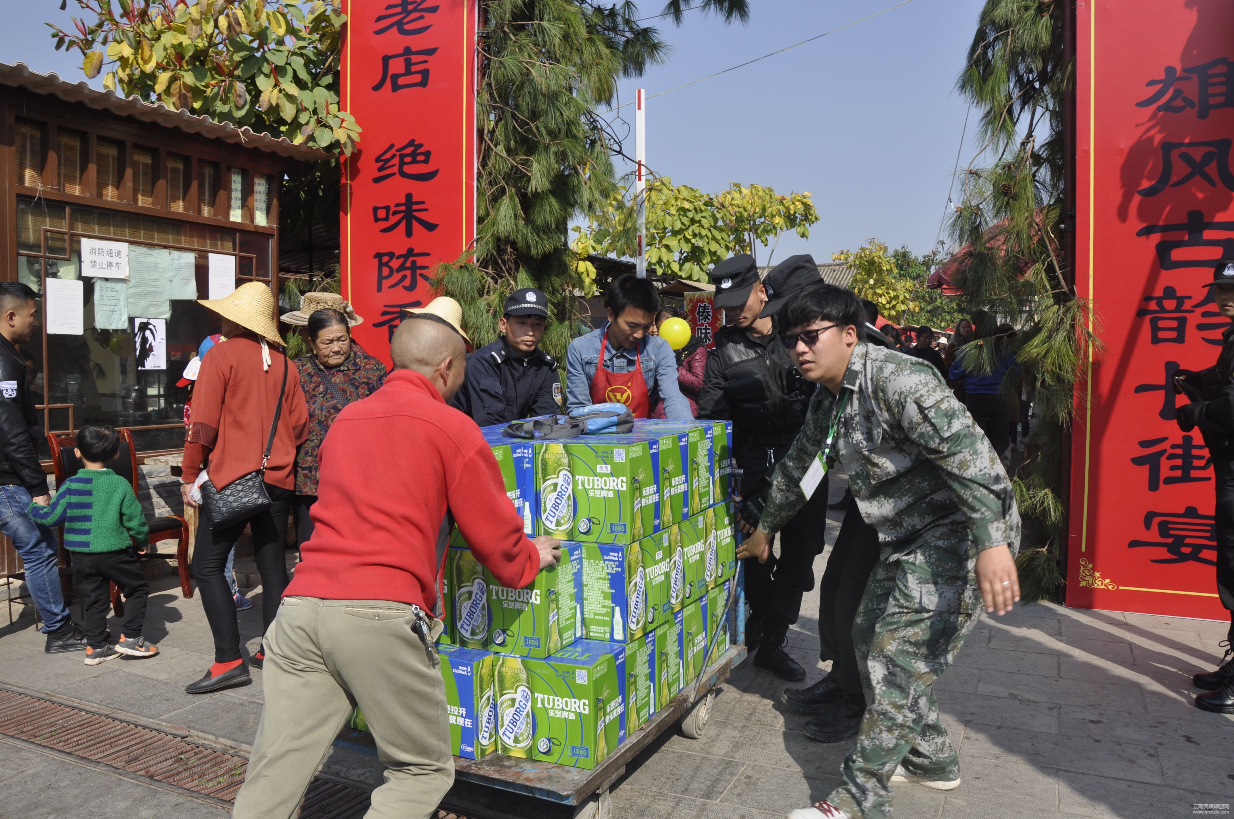3月24日10時30分,一輛送貨的平板車卡在了小吃街門口,在門口執(zhí)勤的警務(wù)人員迅速伸手幫忙,及時將推車推出,避免貨物掉落。